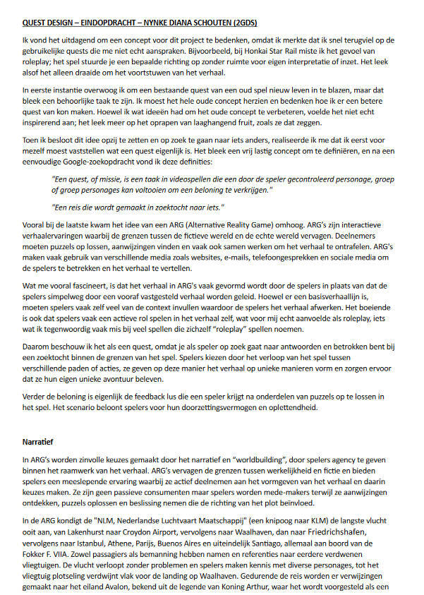 For this project, we were asked to create a "quest" with meaningful choices through narrative, rules, character hooks/development and inspired by an existing game in mind.For this quest I choose to make it in a form of an ARG. ARGs are interactive storytelling experiences where the boundaries between the fictional world and the real world are blurred. Participants have to solve puzzles, find clues and often work together to unravel the story. ARGs often use various media such as websites, emails, phone calls and social media to engage players and tell the story.What particularly fascinates me is that the story in ARGs is often shaped by the players rather than the players simply being guided through a predetermined narrative. Although there